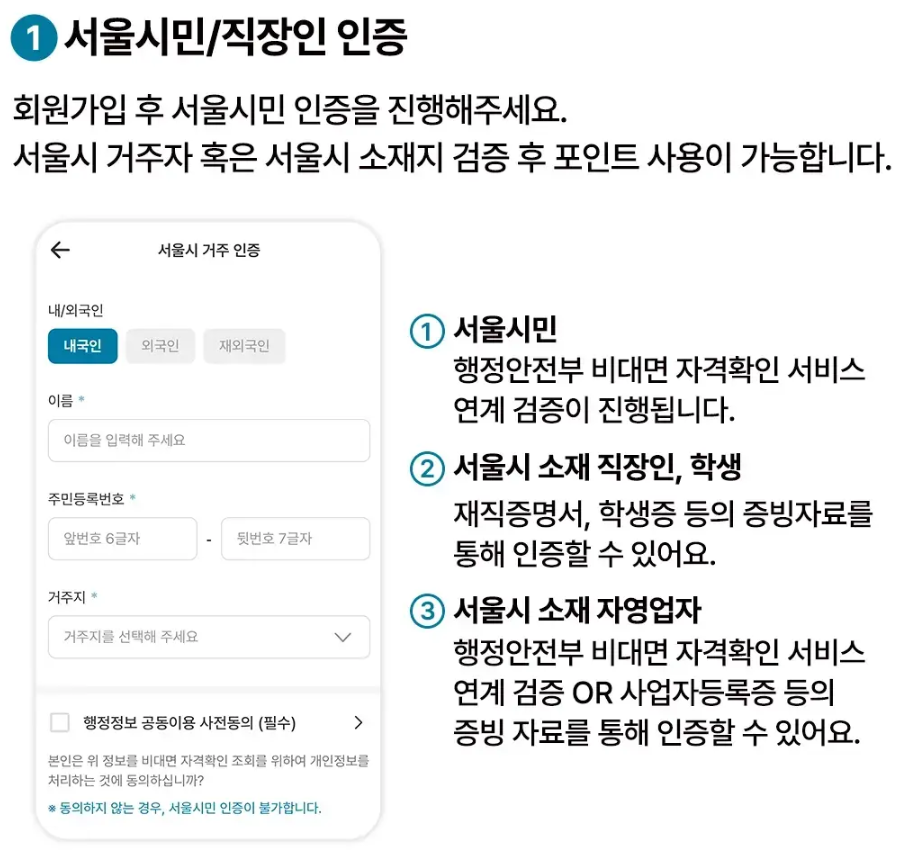 서울시민 또는 서울 생활권 여부 확인
